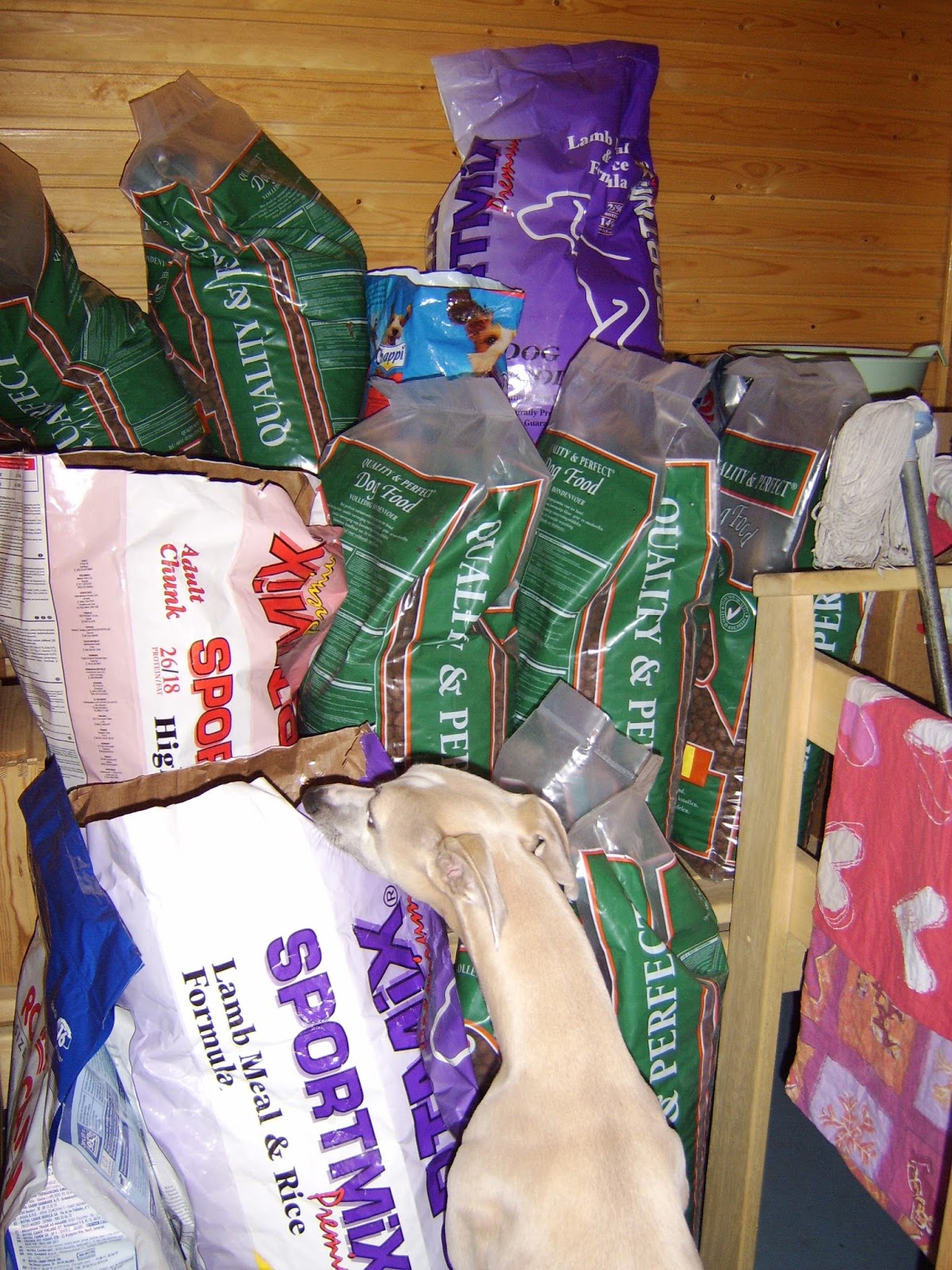 Nirske käy. Useinkin myös jos jään suustani kiinni - kuten harvoin teen - esim. kaupan kulmalla ja koiriani ihailevalla ihmisellä on pullottava kauppakassi käsissään, niin pian se pullottaa entisestään, kun Hupi sinne päänsä työntää. Usein siinä sitten alkaa valitus ja selitys kuulua, että "Ei mulla ole täällä kuin kurkkua (kyllä Hupi sitä syö) ja paketissa raakaa kalaa (kyllä Hupi sitä syö)...".